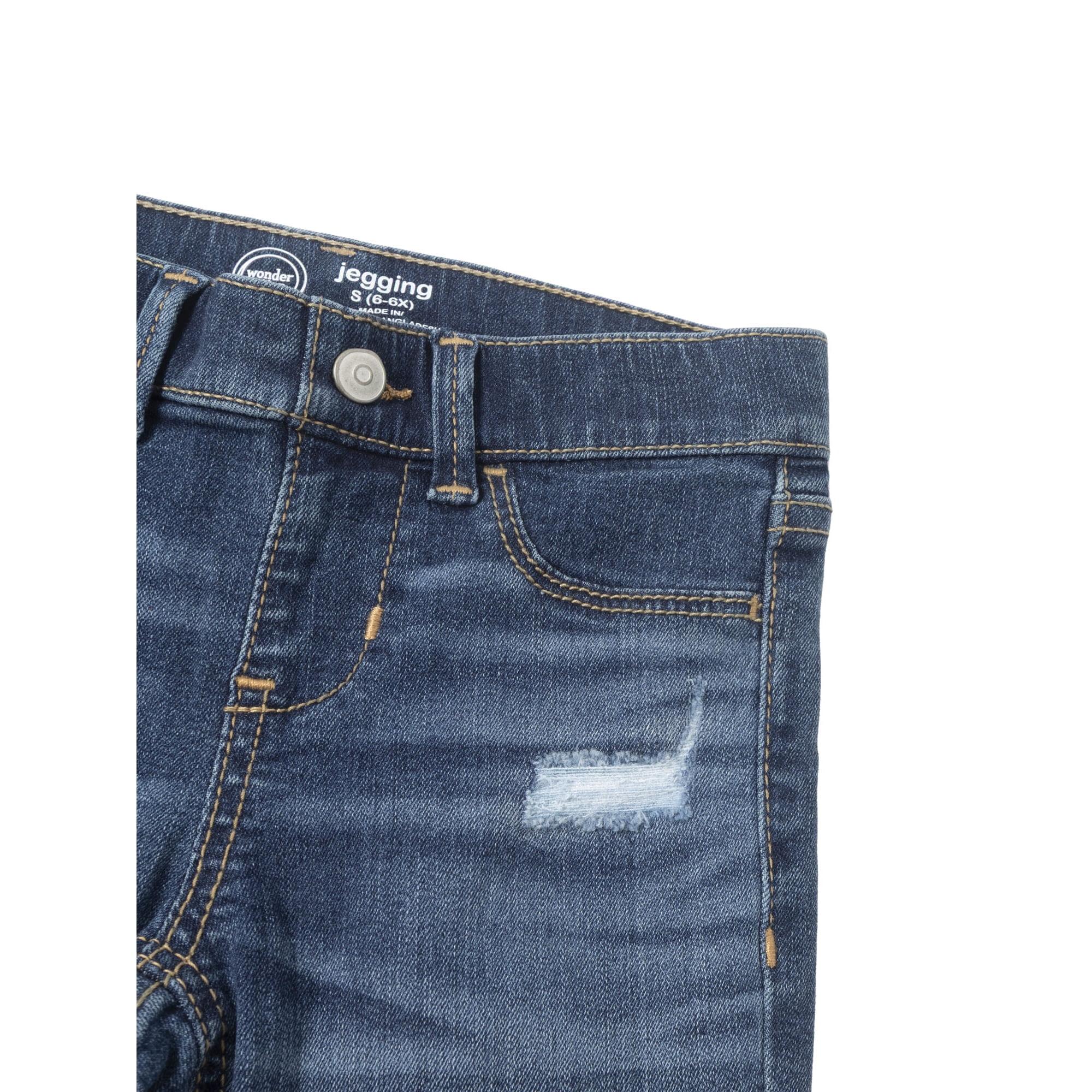 These trendy Wonder Nation Girls’ Skinny Jeggings are the perfect blend of style and comfort. Featuring edgy destruction details along the front, they offer a modern, lived-in look that’s perfect for everyday wear. The ultra-soft denim fabric provides a snug, comfortable fit, while the enclosed elastic waistband ensures a secure and adjustable fit, making them easy to pull on and off. Pair them with any top for a casual, fashionable outfit that’s ready for school, weekend adventures, or hanging out with friends. Available in versatile washes and designs, these jeggings are a must-have for any girl's wardrobe!