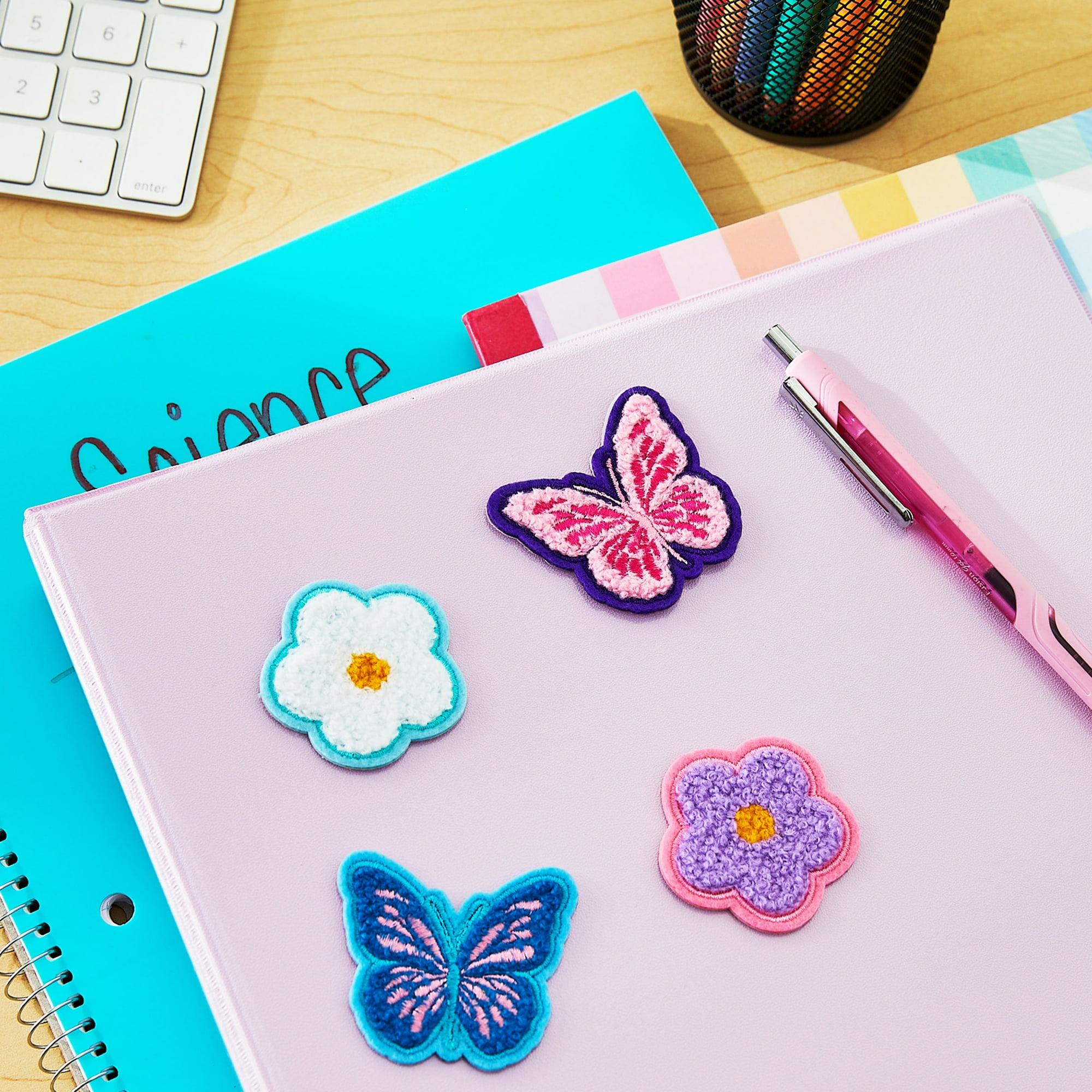 Pen+Gear Multicolor Butterflies and Flowers Chenille Patch Stickers,