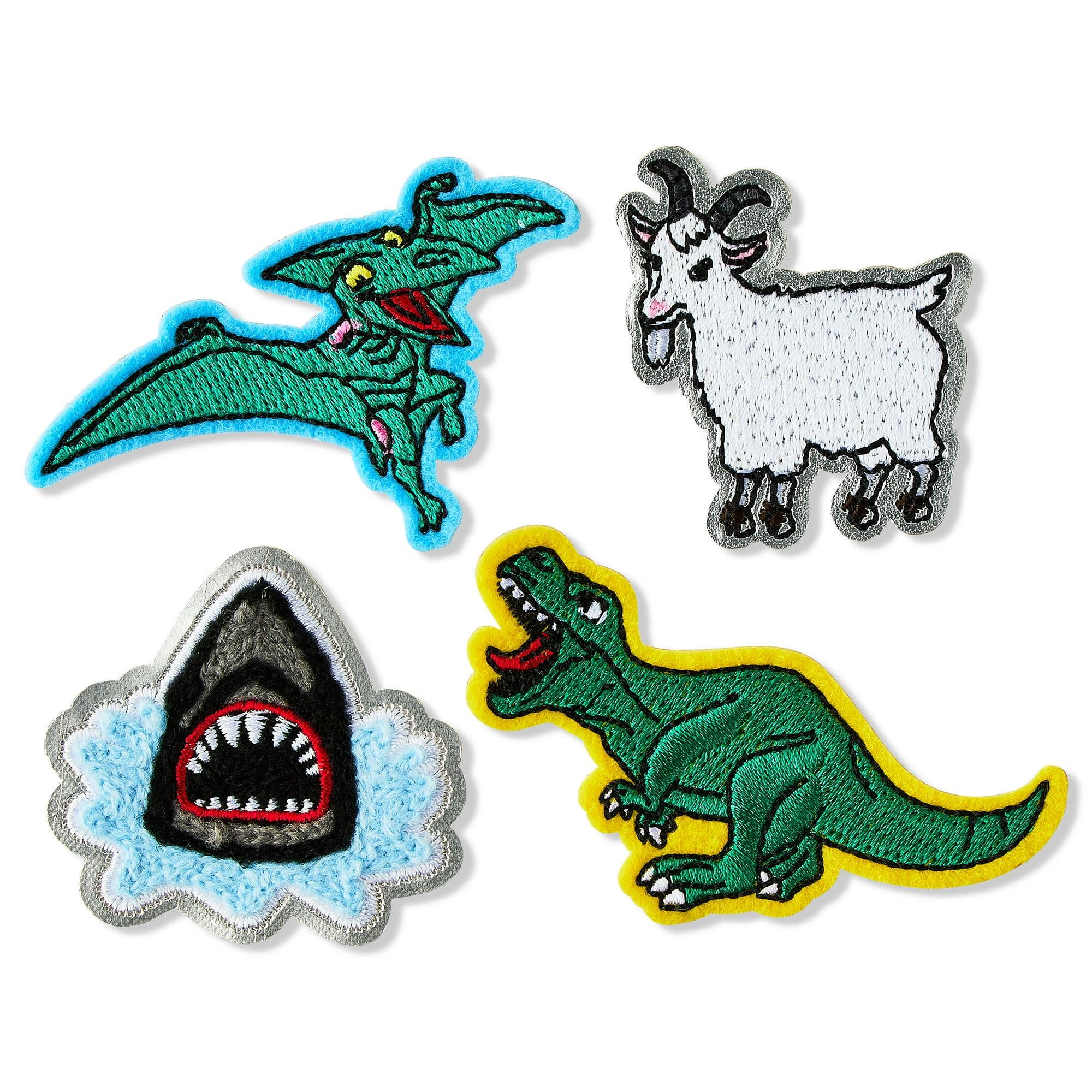 Pen+Gear Multi-Color Dinosaurs, Goat, and Shark Chenille Patch Stickers
