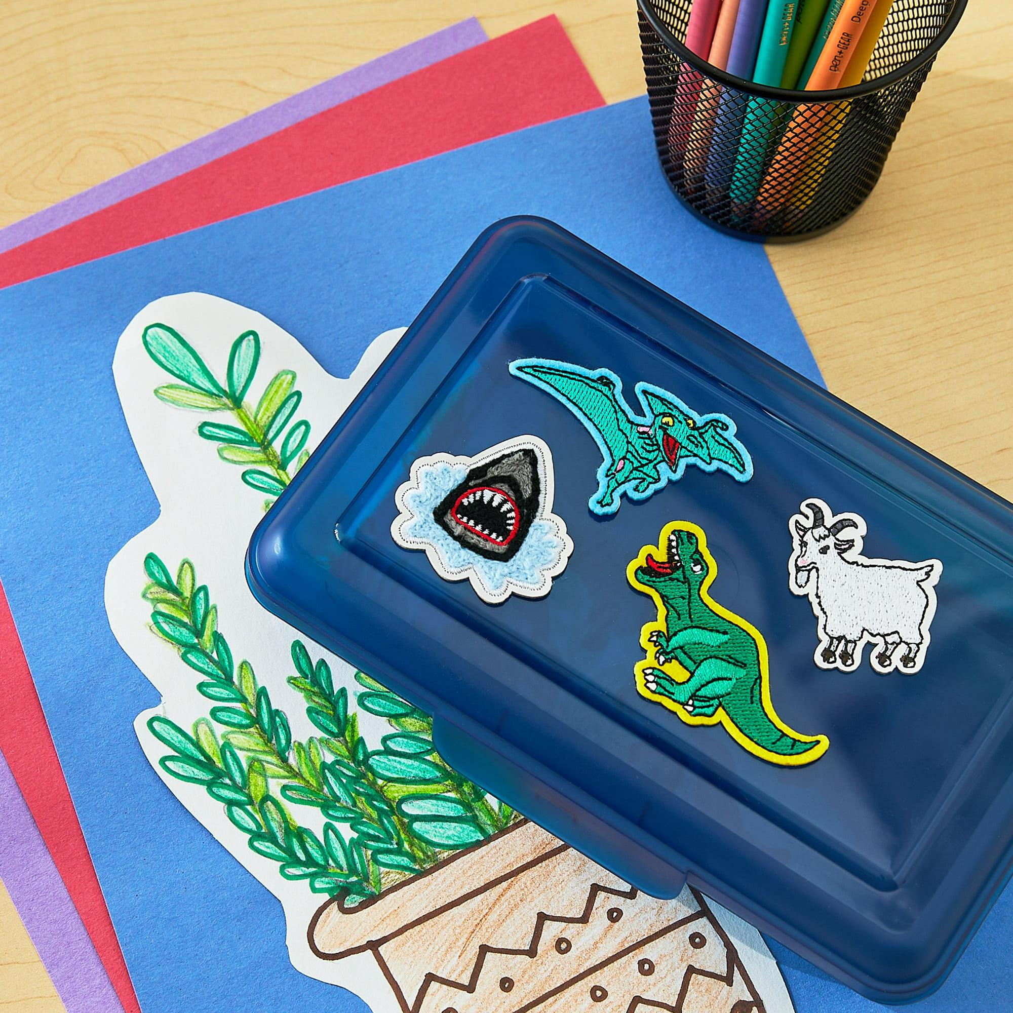 Unleash your wild side with Pen+Gear Multi-Color Dinosaurs, Goat, and Shark Chenille Patch Stickers! This exciting four-pack features bold, adventurous designs including a fierce T-rex, a flying pterodactyl, a silly goat, and a fearsome shark bursting through the water. These self-adhesive patches are perfect for kids ages six and up who want to personalize their backpacks, jackets, notebooks, or lunch bags with a touch of creature-inspired flair. Be sure to explore our entire Pen+Gear collection for other school and office essentials like binders, notebooks, calendars, and more. With colorful embroidery and fun textures, these Pen+Gear Multi-Color Dinosaurs, Goat, and Shark Chenille Patch Stickers add personality to any item!