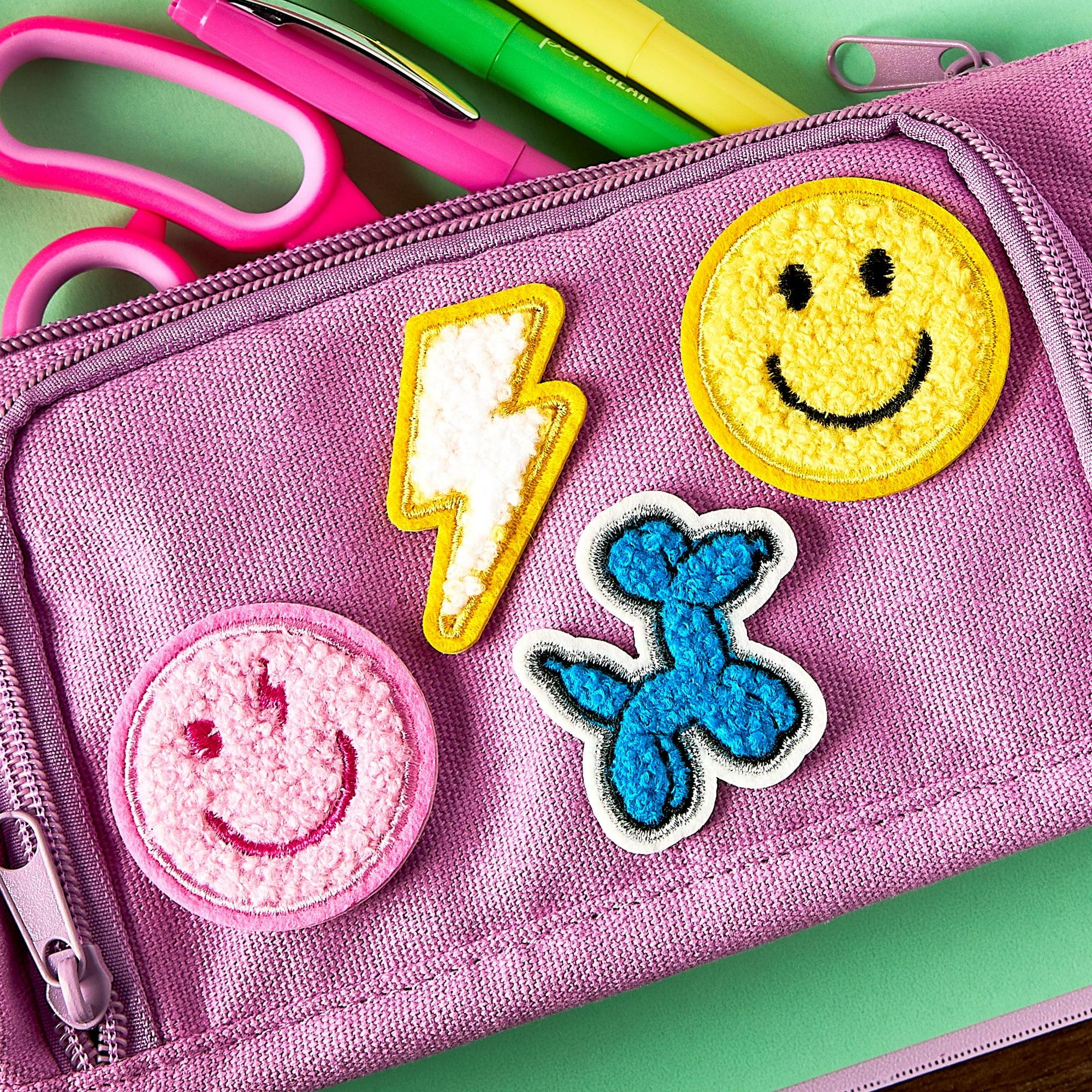 Add a fun pop of personality to your stuff with the Pen+Gear Multi-Color Smiley Faces, Lightning Bolt, and Balloon Dog Chenille Patch Stickers. These delightful patches feature a lightning bolt, balloon dog, and two smiley faces in pink and yellow crafted from soft chenille material. These embroidered patches are made with an adhesive backing but can be sewn on for more permanent wear. Ideal for personalizing notebooks, scrapbooks, laptops, or any other surface, these stickers are easy to apply. Keep them all to yourself or trade them with friends. Whether you're a student looking to decorate your backpack or simply someone who loves adding a bit of flair to everyday items, these charming Pen+Gear Multi-Color Smiley Faces, Lightning Bolt, and Balloon Dog Chenille Patch Stickers are sure to brighten up your day.