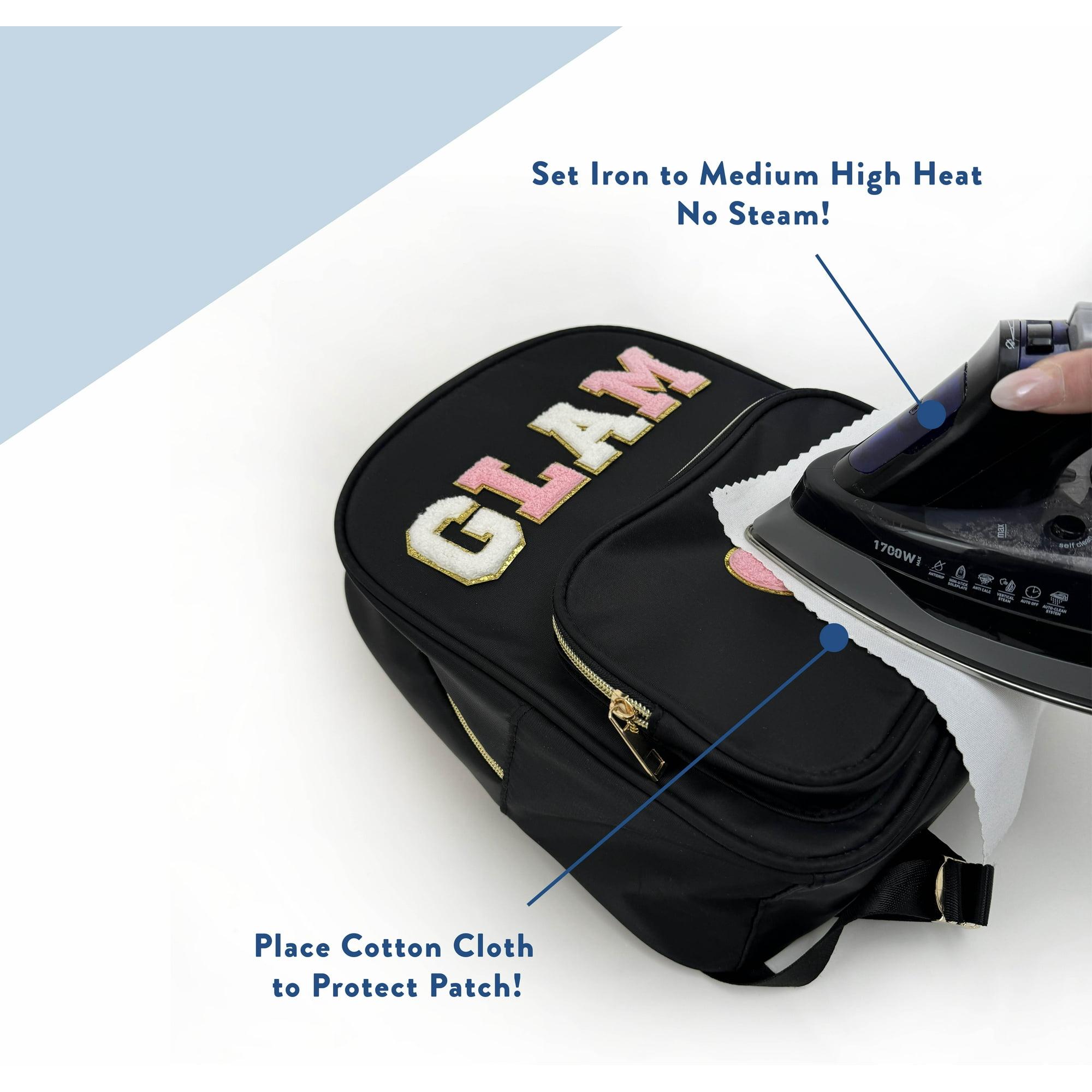 HELLO HOBBY STICKER-TO-PERMANENT GLITTER CHENILLE PATCH - This embroidered chenille patch measures 2.2in (5.5cm) in height and 1/8in thick. Each patch has a gold glittered trim with adhesive backing.