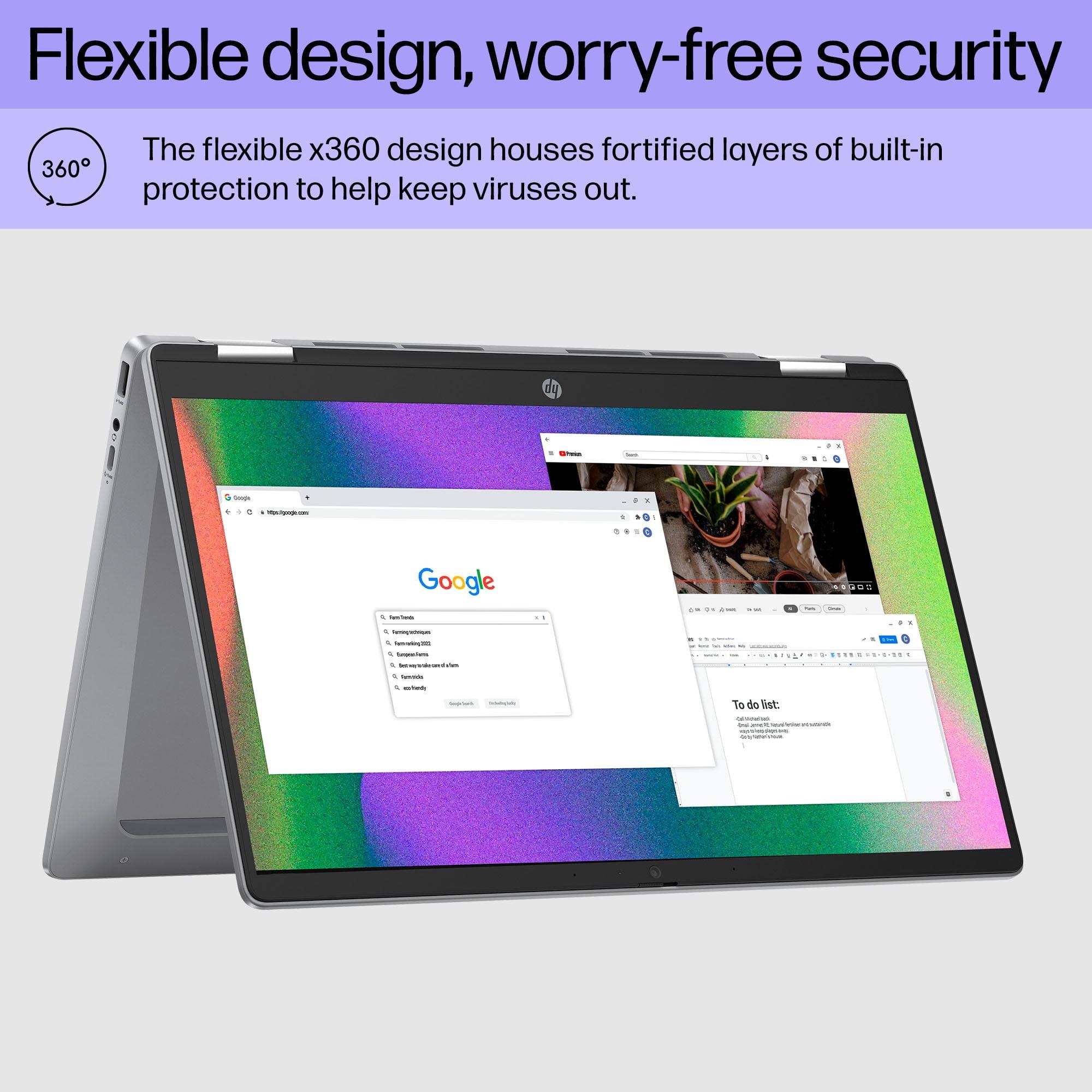 HP 14 inch x360 FHD Touch Chromebook Plus Laptop with Google AI Intel Core i3-N305 8GB RAM 128GB UFS Meteor Silver