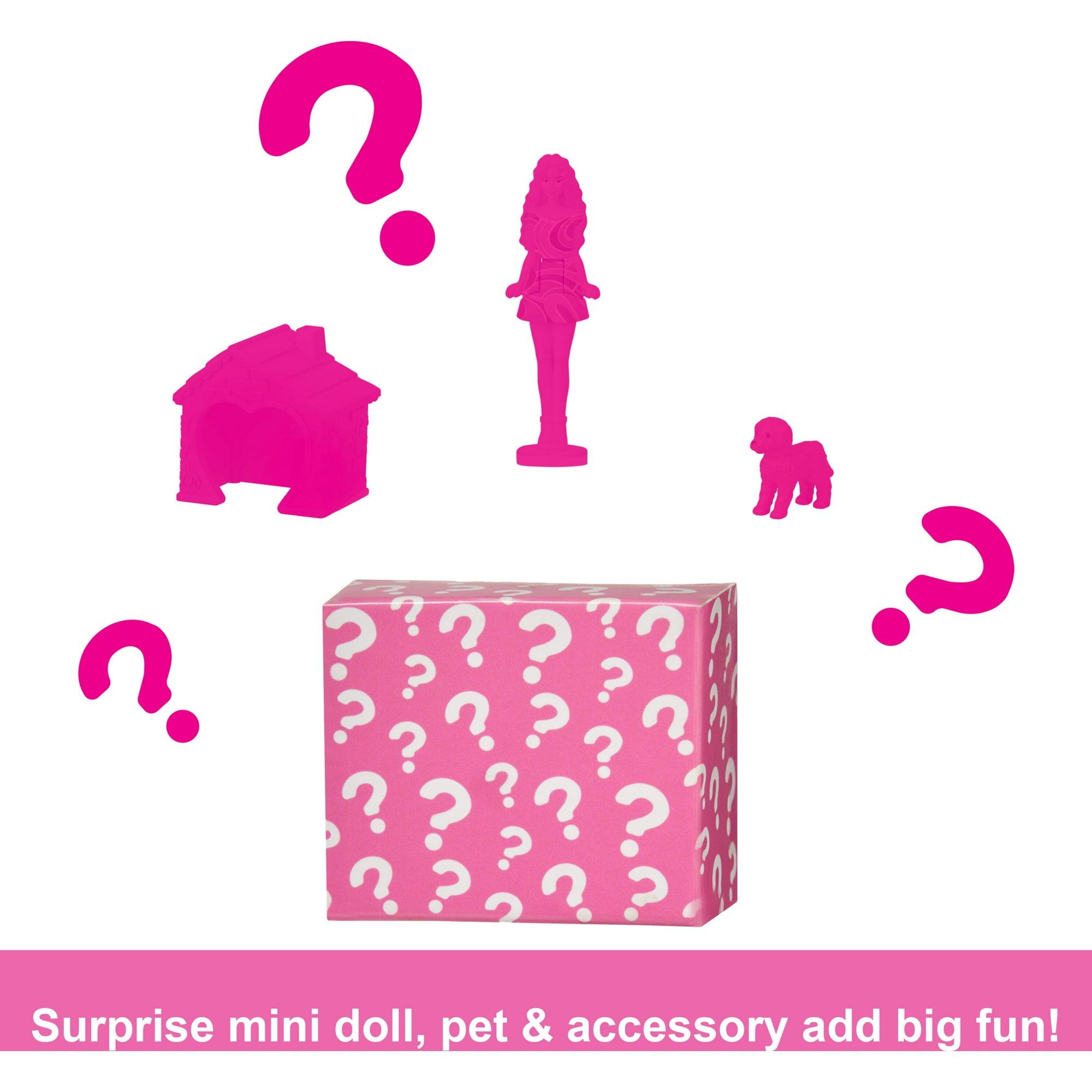 Enter the world of Barbie doll with Mini BarbieLand -- a place to imagine big and Dream in Mini! Built with tiny cuteness and big surprise, these mini doll house sets are ready for play or display. The small-scale recreations of iconic Barbie Dreamhouses come with a box containing a mini Barbie doll, her pet and a pet accessory -- and of course, each house has a working elevator, slide and pool! The mini dolls bend at the waist and stand on a heart-shaped base that fits into different areas of the house. Fans ages 6 years and older will want to collect all the Mini BarbieLand doll, vehicles and playsets to build their own mini world! Each sold separately, subject to availability. Colors and decorations may vary.