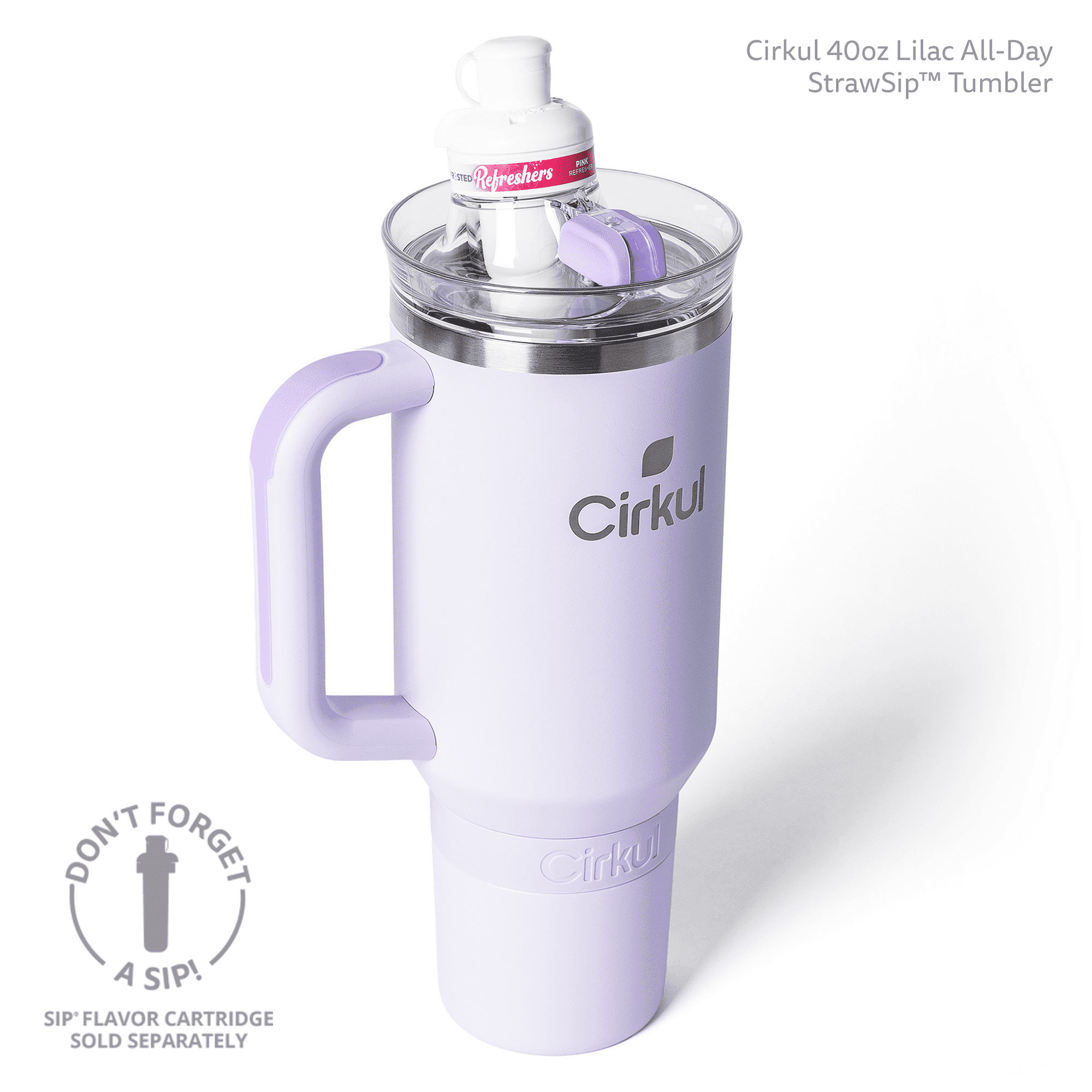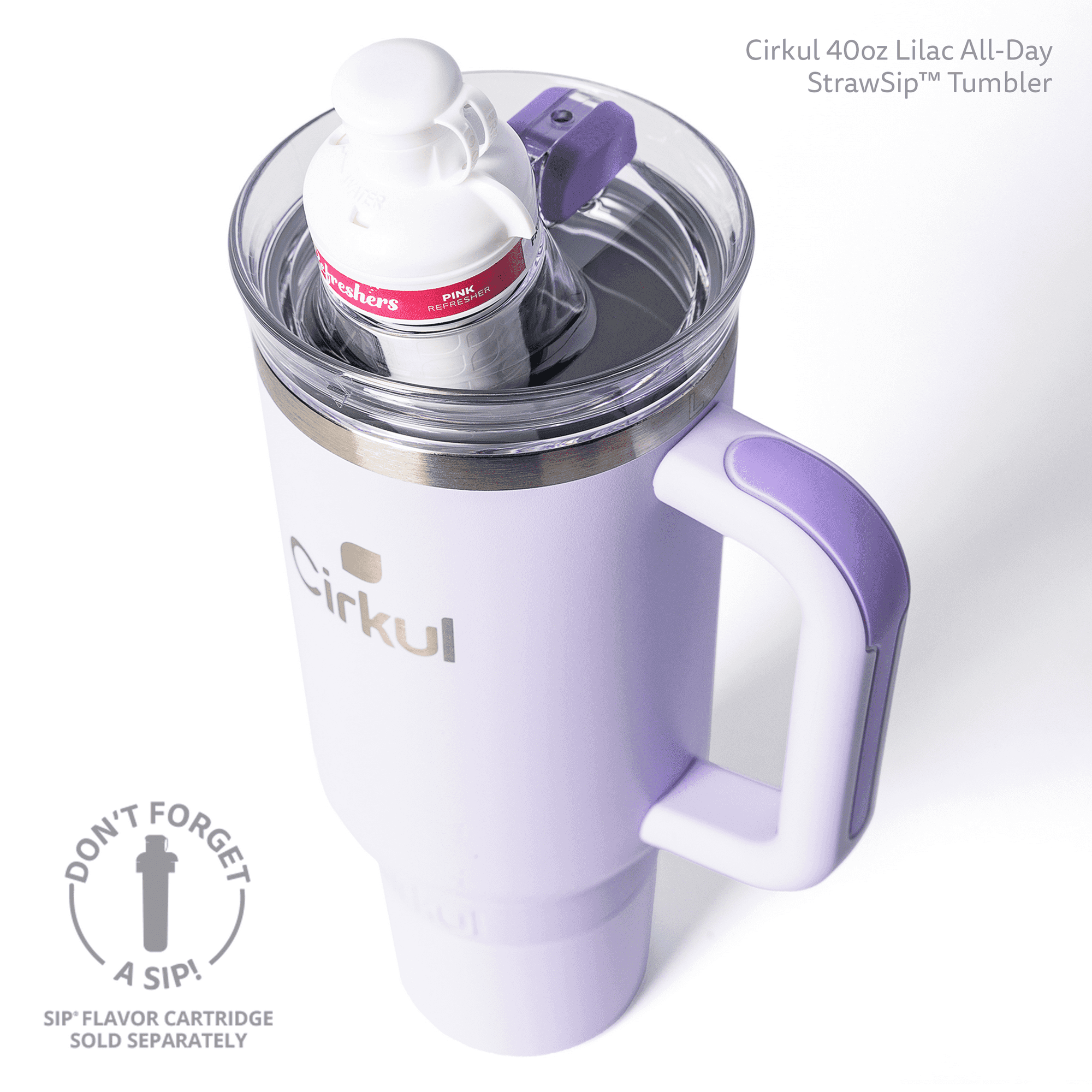 The All-Day StrawSip™ Tumbler is the perfect way to stay hydrated all day long. This product includes one 40oz Lilac Stainless Steel Tumbler and a StrawSip™ Lid that supports a Cirkul Sip® flavor cartridge to add refreshing flavors to your water (Sip® not included). Handheld hydration has never looked like this - whether you’re a leftie or a rightie, you can sip stress-free with this tumbler thanks to the 2-position lid. At Cirkul, our mission is to make drinking water delicious, convenient, and fun.