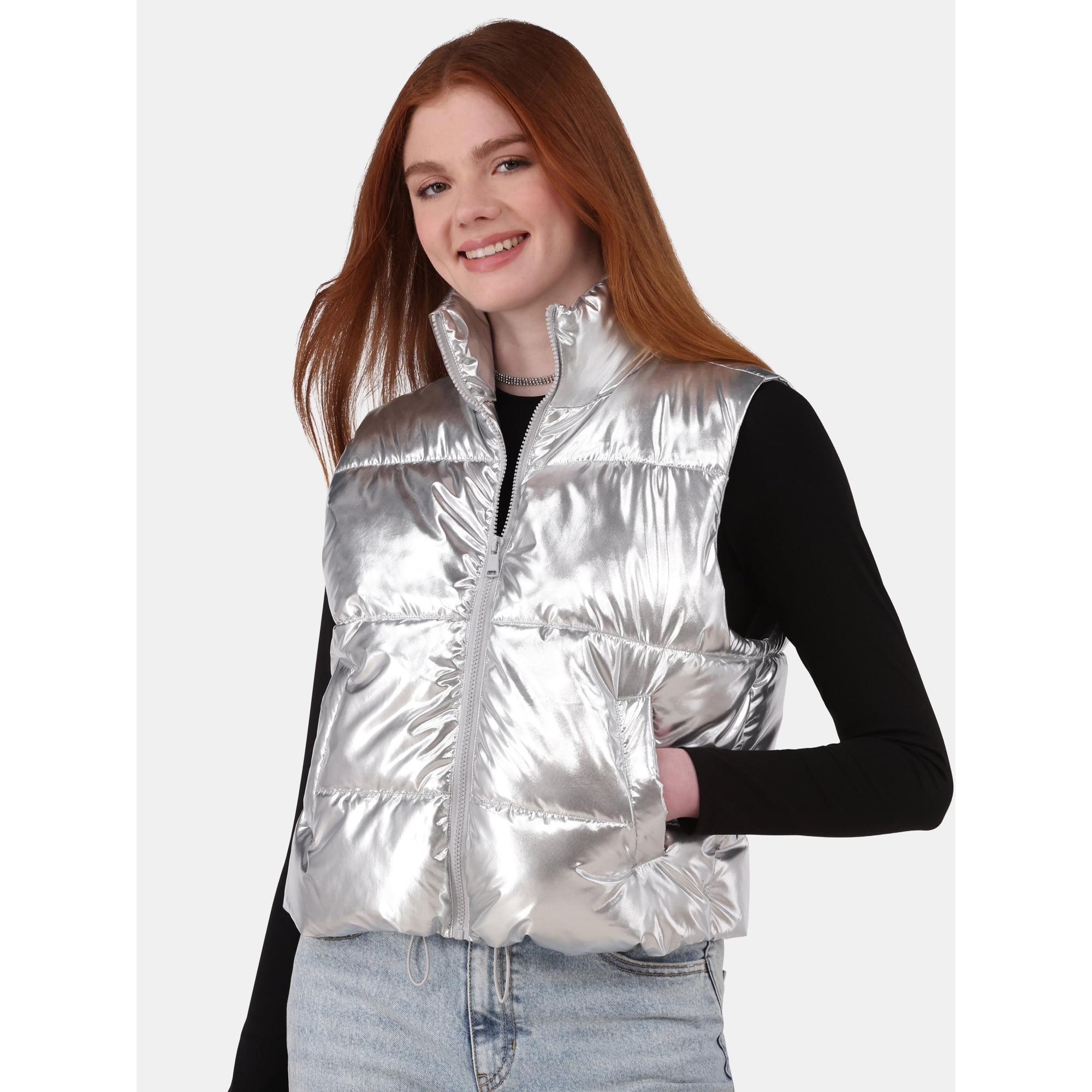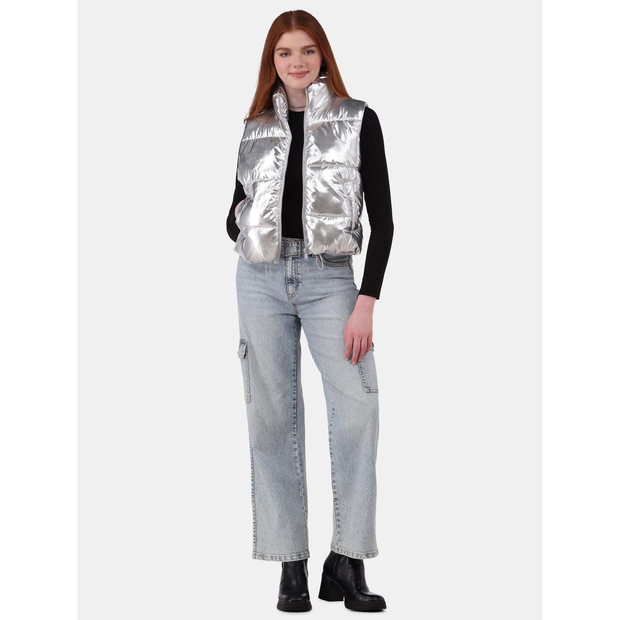 No Boundaries Metallic Puffer Vest, Women's and Women’s Plus