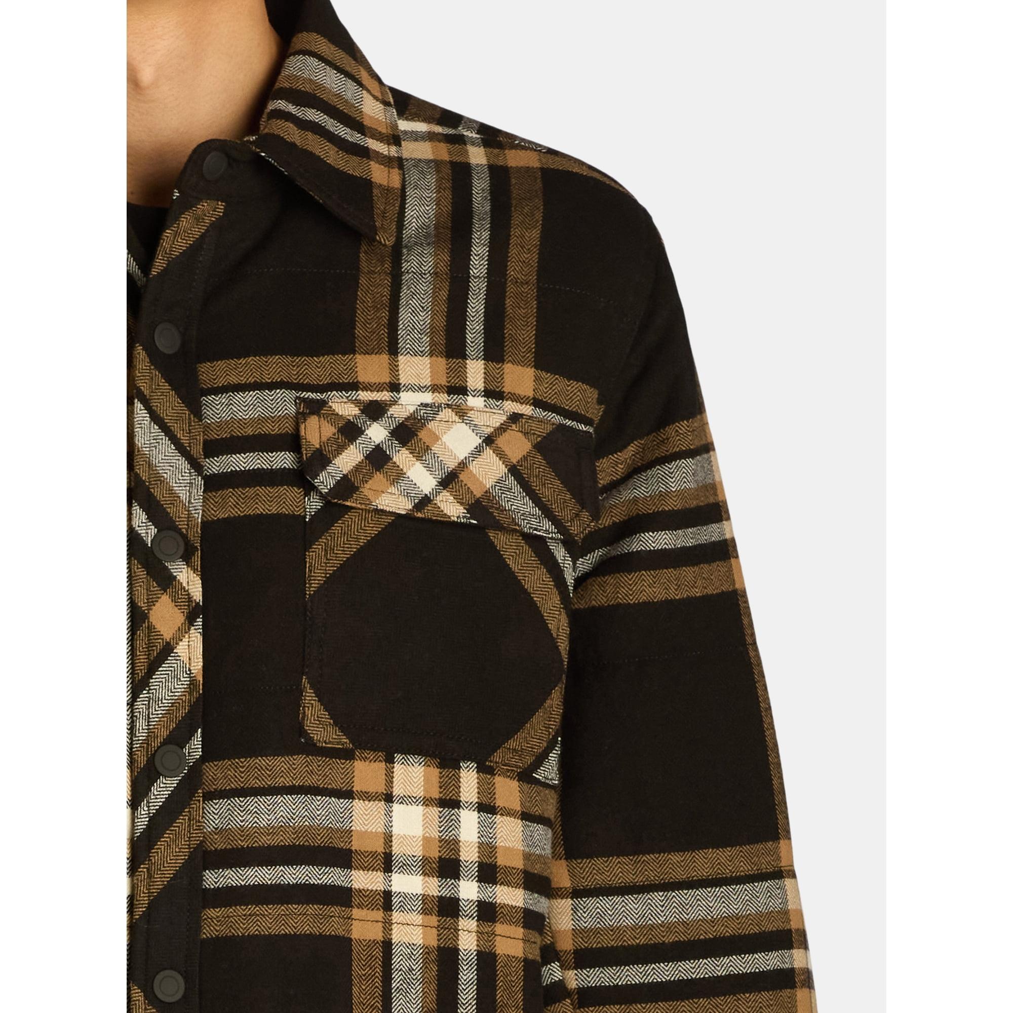 Looking for a perfect jacket that can keep you warm and comfortable during outside activities or on the go errands? Check out this Men's Quilted Flannel Shirt Jacket from George. It is designed with a polyester fill (polyfill) and high pile fleece lining that provides exceptional warmth and versatility. The jacket features set in sleeves and rubberized matte finished snaps on the center front and cuffs (which are adjustable). Plus, it comes with various rubberized snap closure pockets - chest and hand pockets. This jacket is perfect for Fall through Winter and it is offered in a wide range of plaids. It is exclusively available at Walmart.