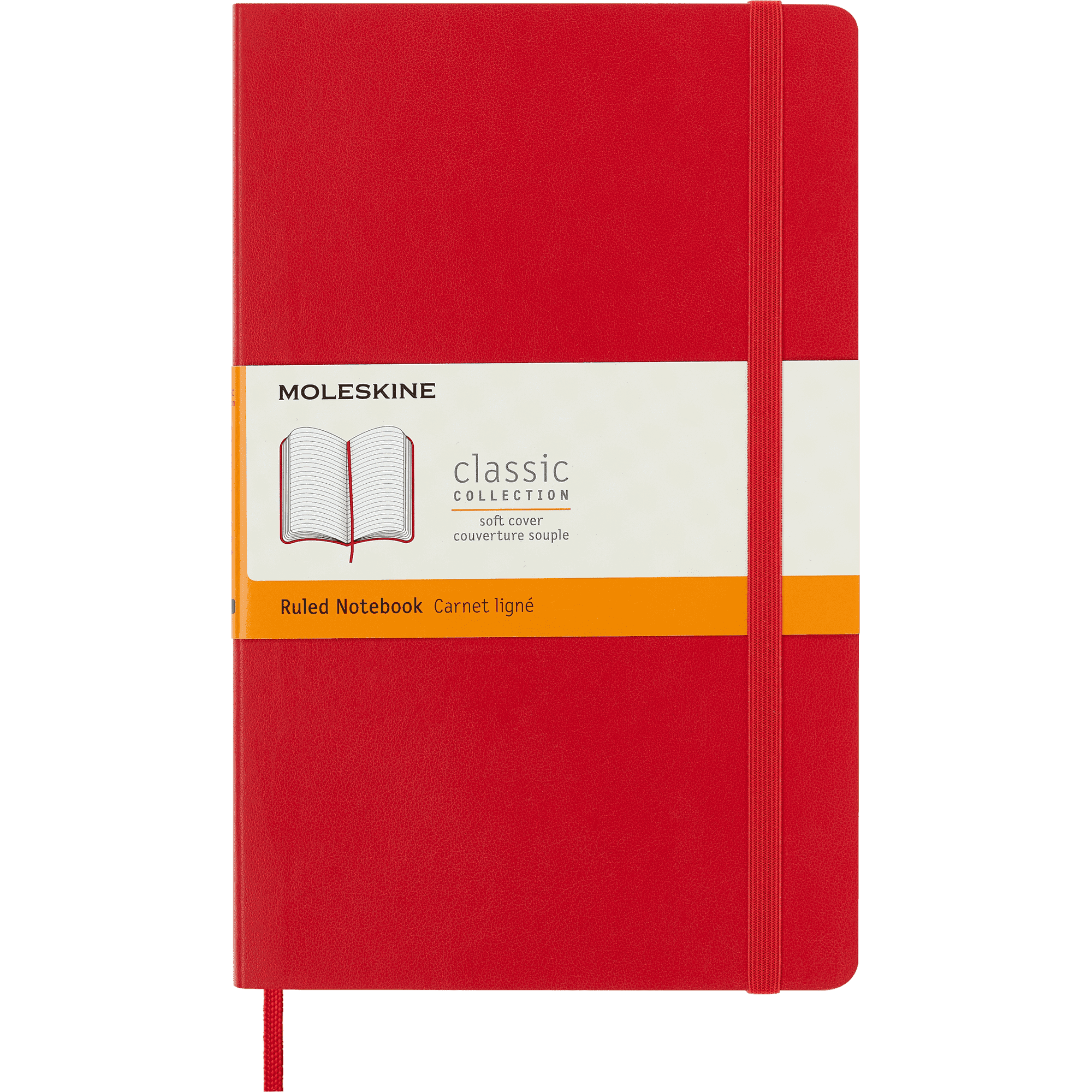 Moleskine Classic Notebook, Soft Cover, Ruled, Large 5" x 8.25", Scarlet Red, 192 Pages