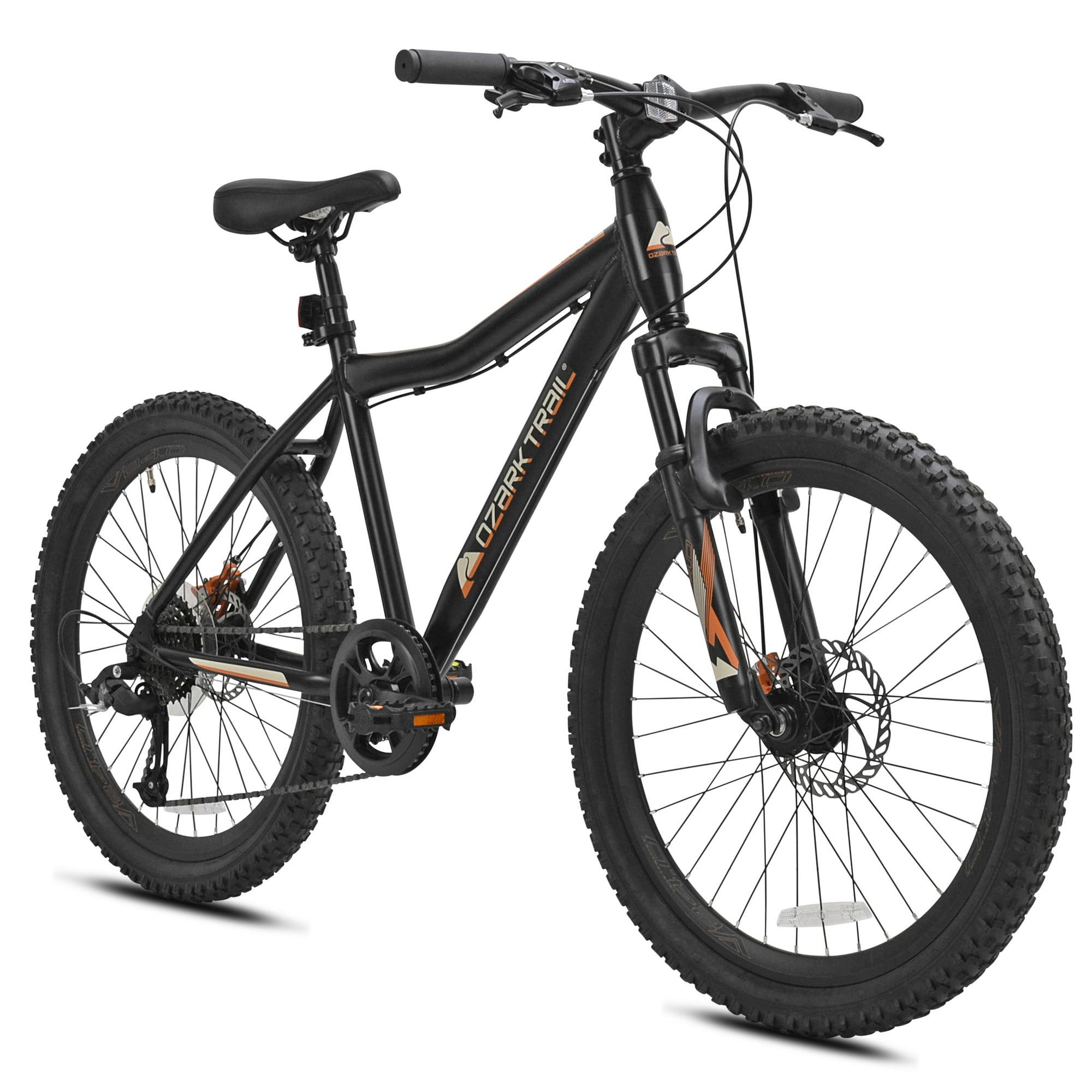 The 24" Ozark Trail Glide mountain bike hits the sweet spot with its capability, versatility, and affordability. Sporting a lightweight aluminum frame with a specially tapered headtube, this mountain bike is designed specifically for your teen's trail-riding needs. The dual mechanical disc brakes give substantial stopping power during normal trail riding and deep descents.